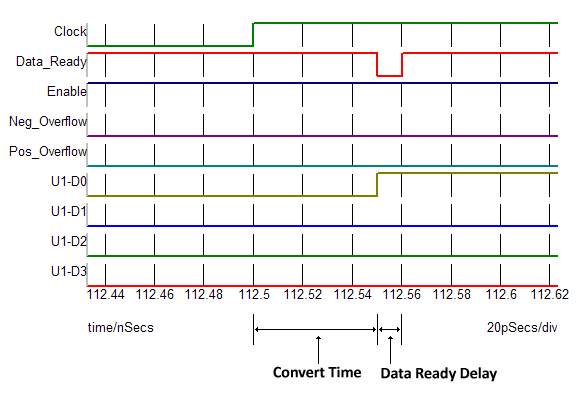 This inertial delay behavior describes the Delay parameter for all the Advanced Digital Logic Gates as well as the Out Delay of the Adder, Subtracter, Multiplier, Comparator and Latches and each of the delay parameters of the Analog-to-Digital Converters, Counters and Flip Flops.