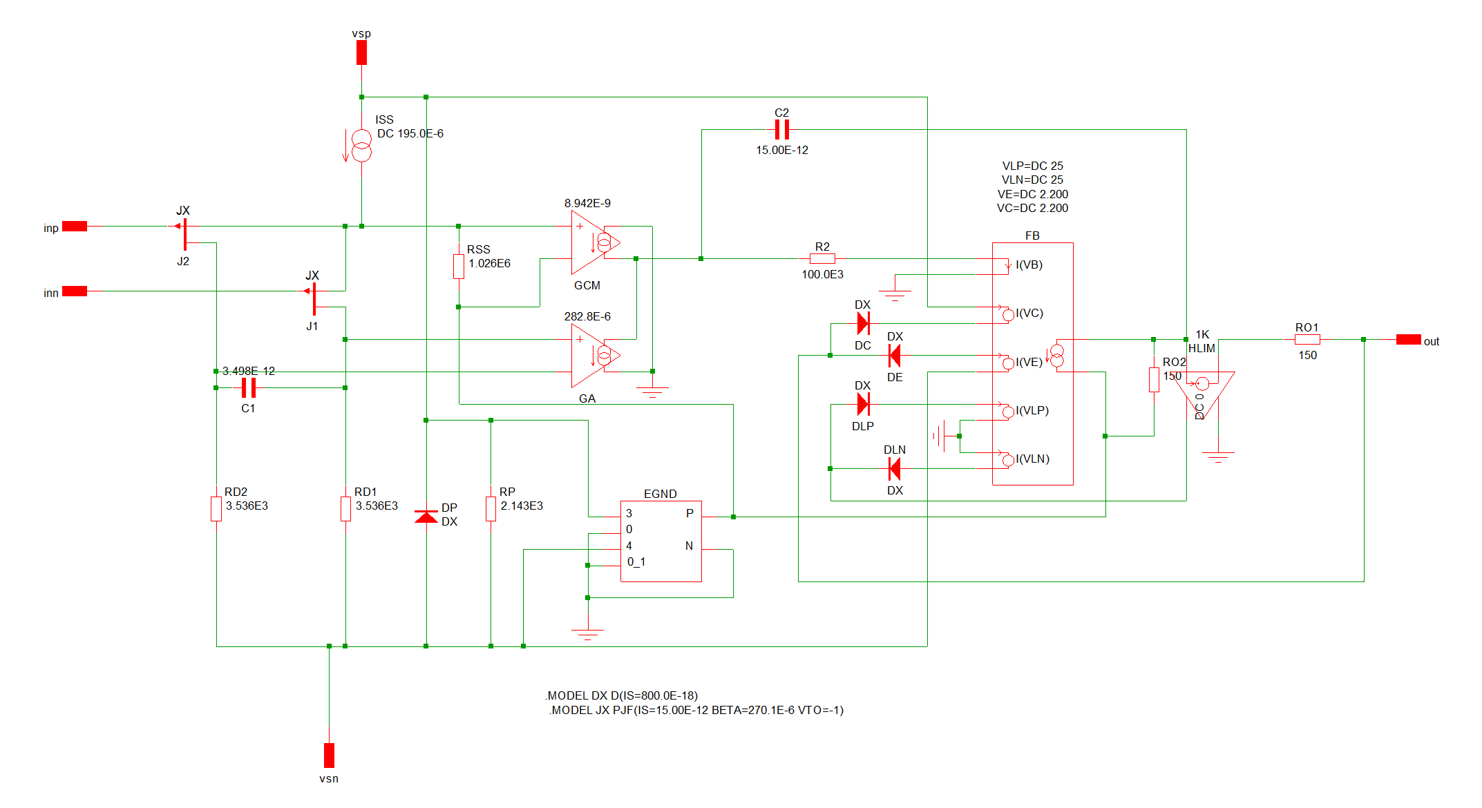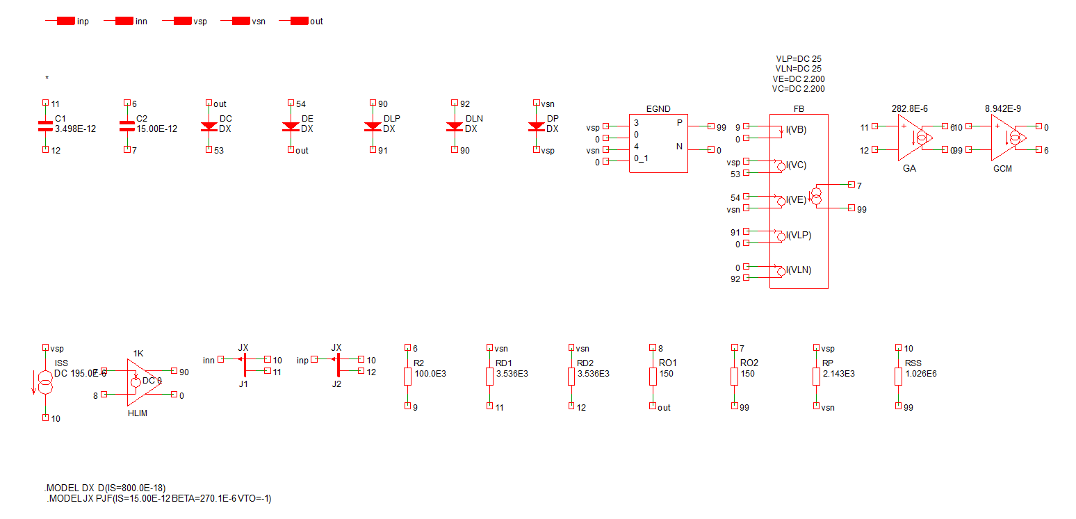 An example of the output from the converter for a simple opamp is shown below:
