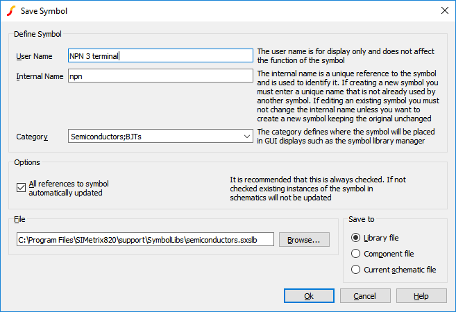 To save the current symbol, select menu File > Save.... The following dialog will be displayed: