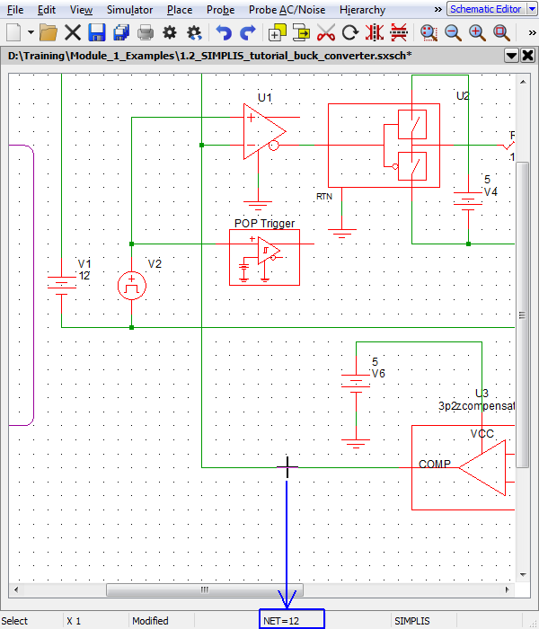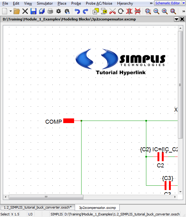 1. Open the 1.2_SIMPLIS_tutorial_buck_converter.sxsch schematic from the examples.