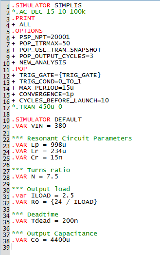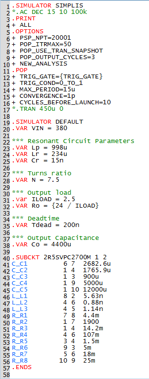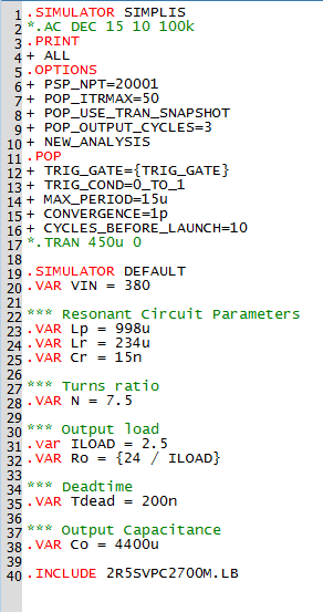 2. Insert the text .SIMULATOR SIMPLIS at the first line. The file should appear as follows:
