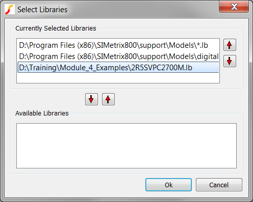 Result: The 2R5SVPC2700M.LB entry is moved to the Available Libraries box.