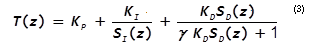 Eq. (1), which has two zeroes and one pole, results in an improper transfer function or filter because there are more zeroes than poles. A pole is sometimes added to the derivative term to limit the bandwidth at higher frequencies. One form for such a PID filter with a pole added for the derivative action is shown below: