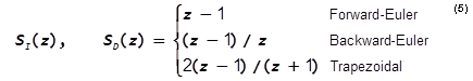 If this first-order approximation is used, the frequency response for Eq. (3) will have a good match with the frequency response for Eq. (2), as long as the poles and zeroes of Eq. (3) are more than two decades below the sampling frequency.
