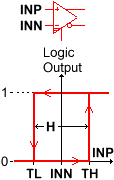 the inputs. The hysteretic-window width, HYSTWD is centered
