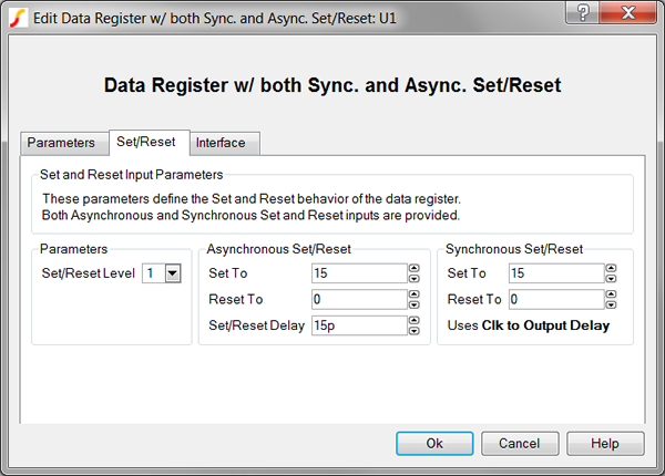 1. From the Edit Data Register with both Sync and Async Set/Reset dialog box, click on the Interface tab.