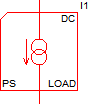 The DC Current Load subcircuit models a constant current load. Unlike the Resistive Load, the DC Current Load uses a pure current source.