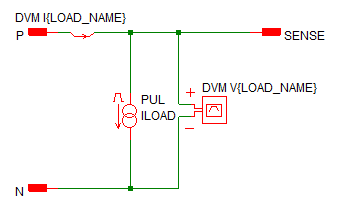 To set any managed DVM load to a Repeating Pure Current Pulse w/ Zero Rise and Fall Times Load subcircuit, place a PulZrft() testplan entry in the Load column.