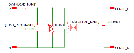 Note: If the specified starting current is 0 and the load is configured by DVM using either a Pulse() function or the PulseLoad() test objective, DVM replaces the Pulse Load - Single Current Pulse subcircuit with a Pulse Load - Single Pure Current Pulse subcircuit. The Pulse Load - Single Current Pulse does not use a parallel resistance to model the starting current.