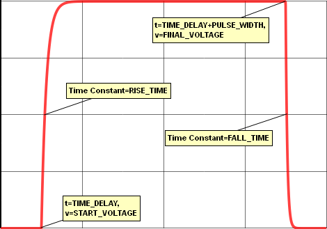 Exp(REF, START_VOLTAGE, FINAL_VOLTAGE, TIME_DELAY, RISING_TAU, PULSE_WIDTH, FALLING_TAU) Exp(REF, START_VOLTAGE, FINAL_VOLTAGE, TIME_DELAY, RISING_TAU, PULSE_WIDTH, FALLING_TAU, OPTIONAL_PARAMETER_STRING)