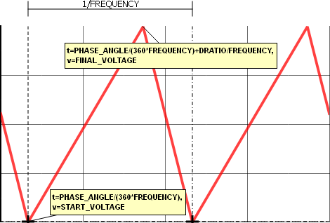 START_VOLTAGE 0 Real   V The valley or starting voltage for the triangle waveform source. This can be a numeric value or a symbolic value, such as a percentage of nominal input voltage.