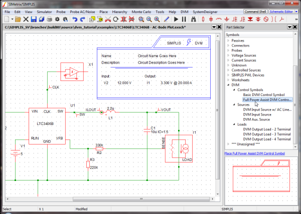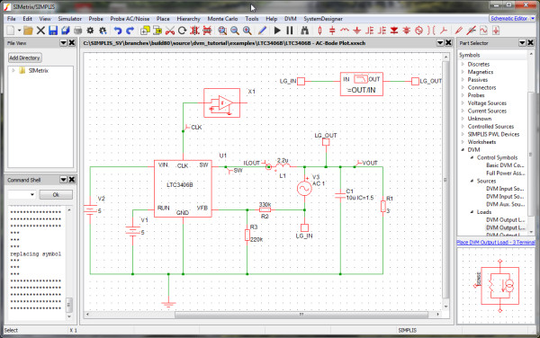 2. To open the schematic, double click the LTC3406B - DVM ADVANCED.sxsch file or drag that file into the SIMetrix/SIMPLIS Command Shell.