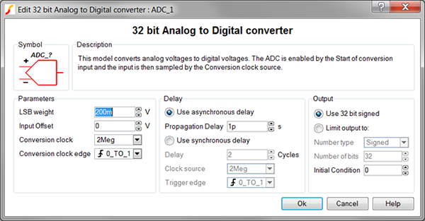 - Double click on the ADC symbol on the schematic to bring up the edit dialog.