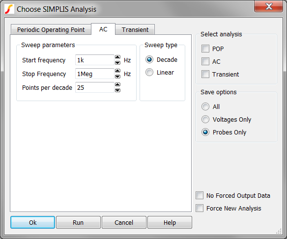 For more information about this analysis mode, see the SIMPLIS Reference Manual ().