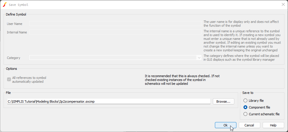 - Save your schematic component using Ctrl+S. The compensator schematic component