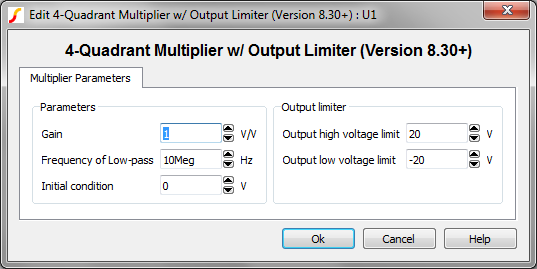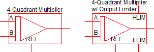 • Analog Functions > Multiplier / Divider > 4-Quadrant > Multiplier - 4 Quadrant w/ Output Limiter