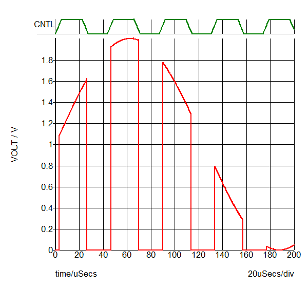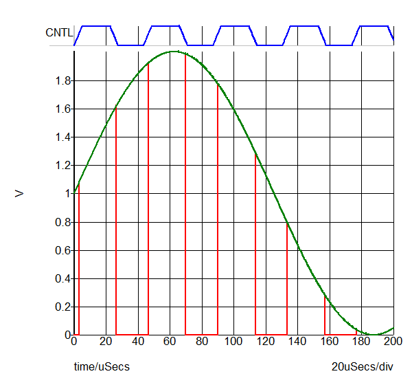 The waveform below is the test circuit showing a sinusoidal VIN waveform and an asynchronous CNTL waveform.