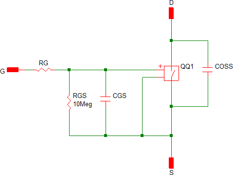 Level 1 models a switch with on/off resistance values, body diode, and gate capacitance, plus a lumped-linear Coss capacitance across drain and source terminals. The Level 1 Model can be used for power stage simulations, including Quasi-resonant, LLC, and phase-shifted bridge topologies,as well as for AC Bode Plots and for simulating output voltage during load and line transient.