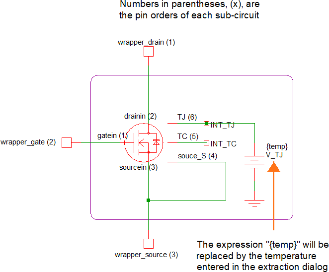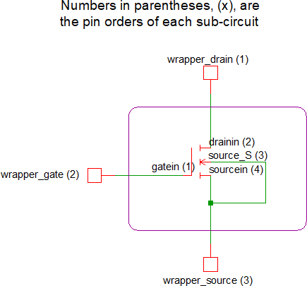 pin order of the wrapper subcircuit. Also, the source pin of the wrapper