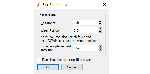 The device value is edited in the same manner as for resistors. You can also supply an initial condition that defines how the device behaves while a DC operating point is calculated. For capacitors you can either specify that the device is open circuit or alternatively you can specify a fixed voltage. For inductors, the device can be treated as a short circuit or you can define a constant current.