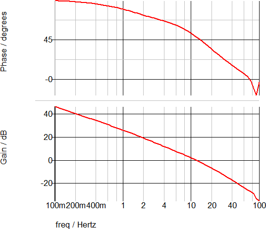 The overall loop gain of the PFC converter is shown below. This simulation took 1second to run after a successful POP analysis.